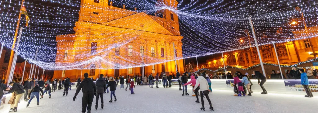Debrecen Advent trasforma la seconda città ungherese in un incantevole villaggio delle feste, dove antico e contemporaneo convivono armoniosamente. Vie e piazze si riempiono di installazioni luminose imponenti, bancarelle di artigiani e irresistibili fragranze di kürtőskalács e vin brulé.